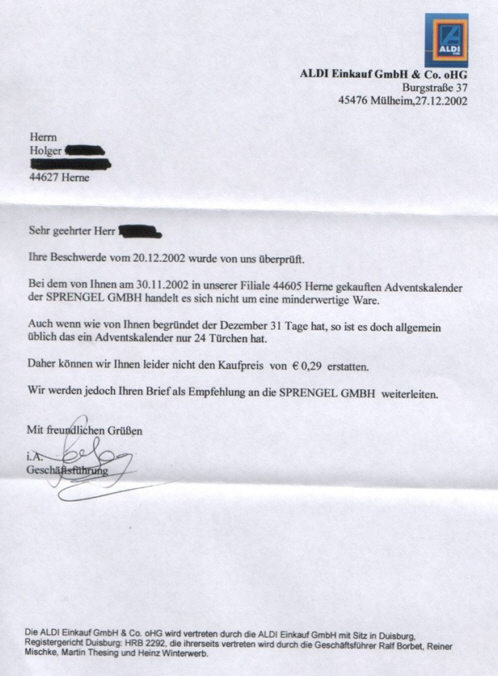Beschwerde über Adventskalender